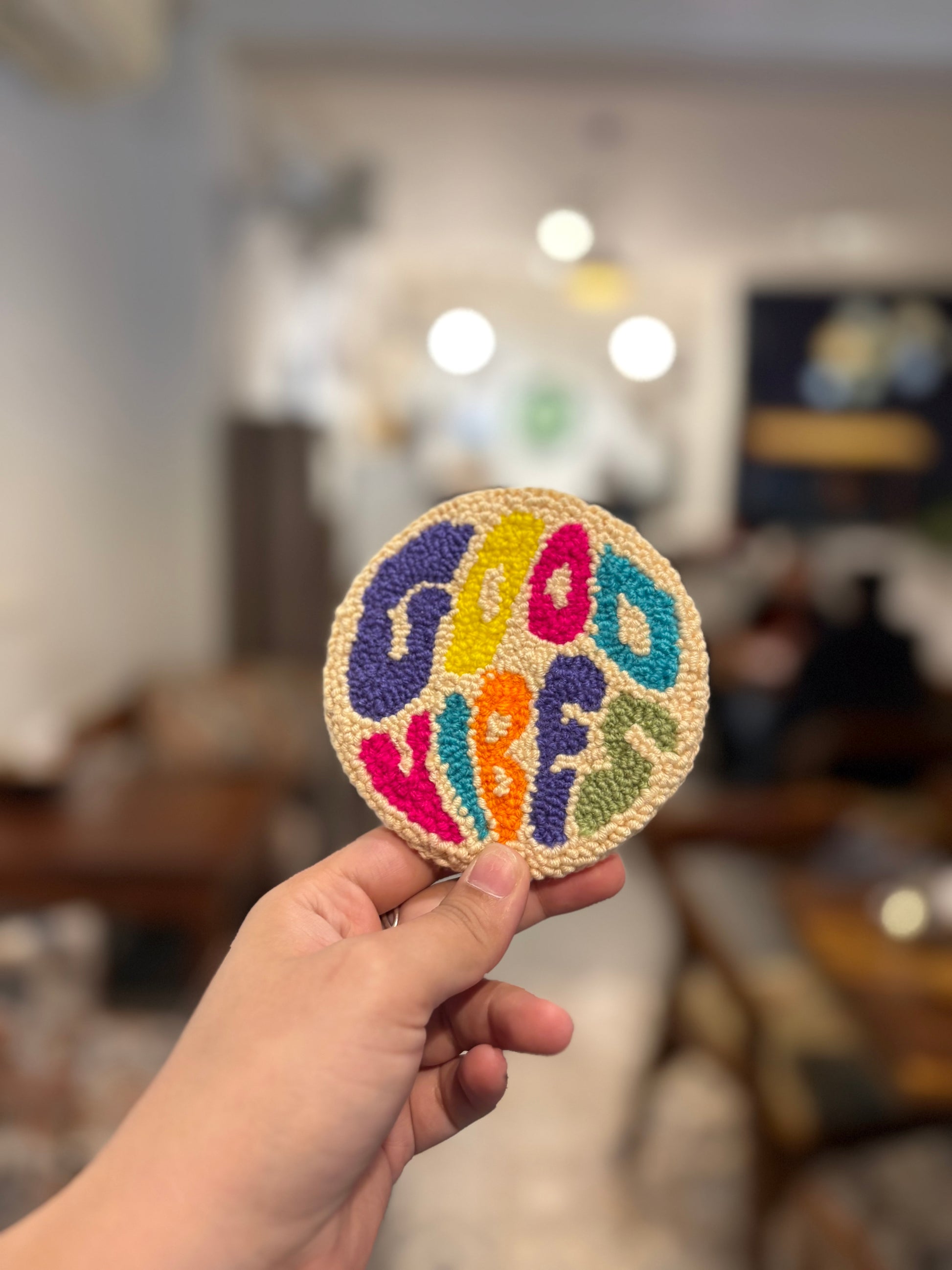 Every coaster is made slowly and mindfully by hand using the traditional punch-needle technique. No machines — just patience, passion, and love in every loop.