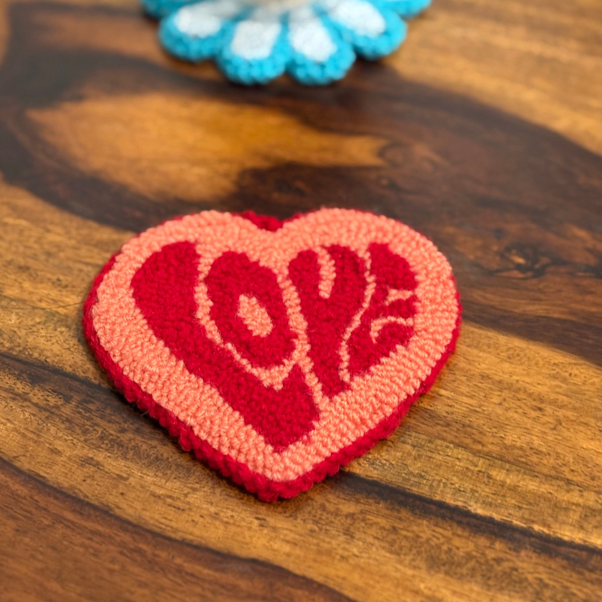 Every coaster is made slowly and mindfully by hand using the traditional punch-needle technique. No machines — just patience, passion, and love in every loop.