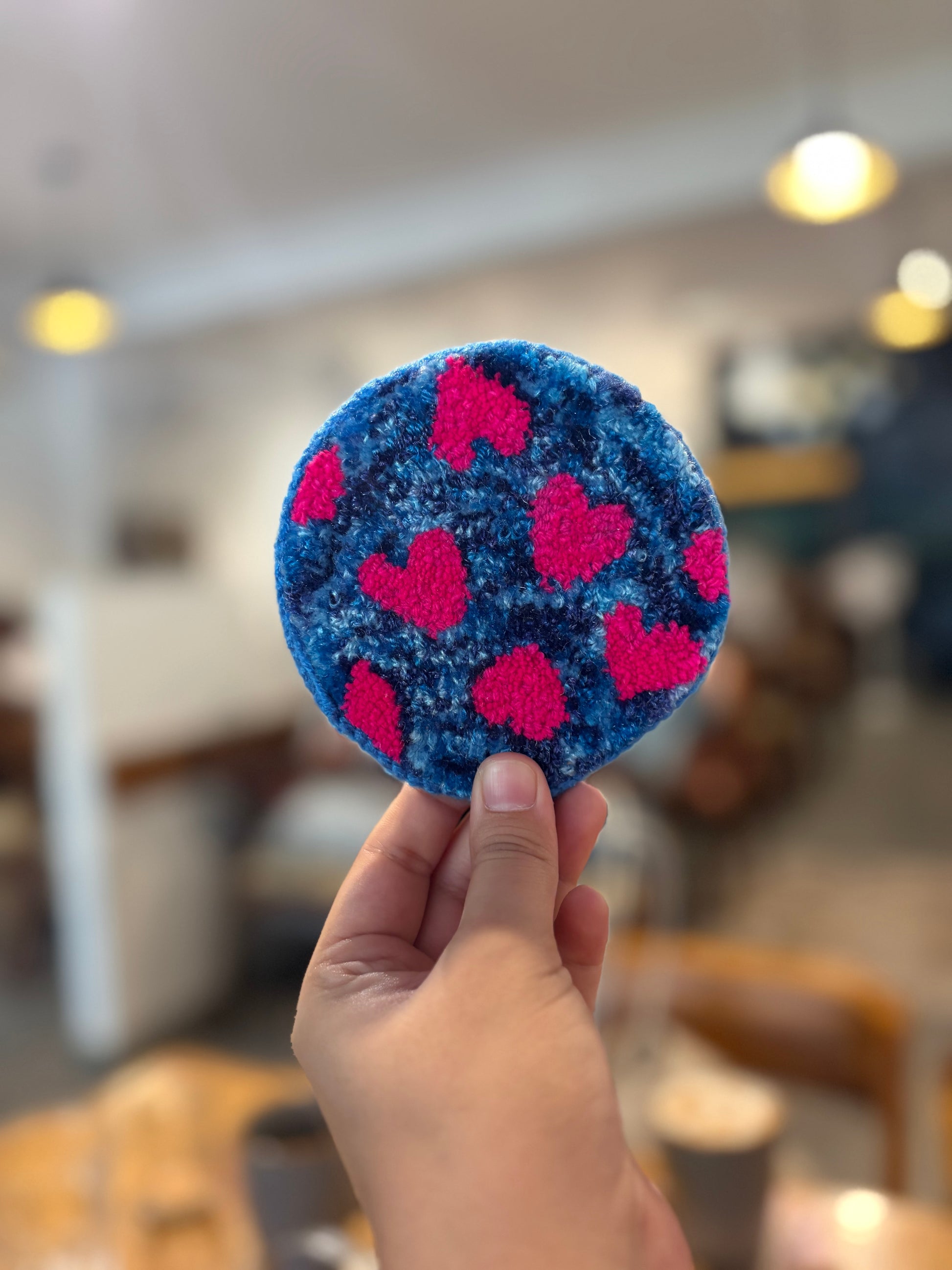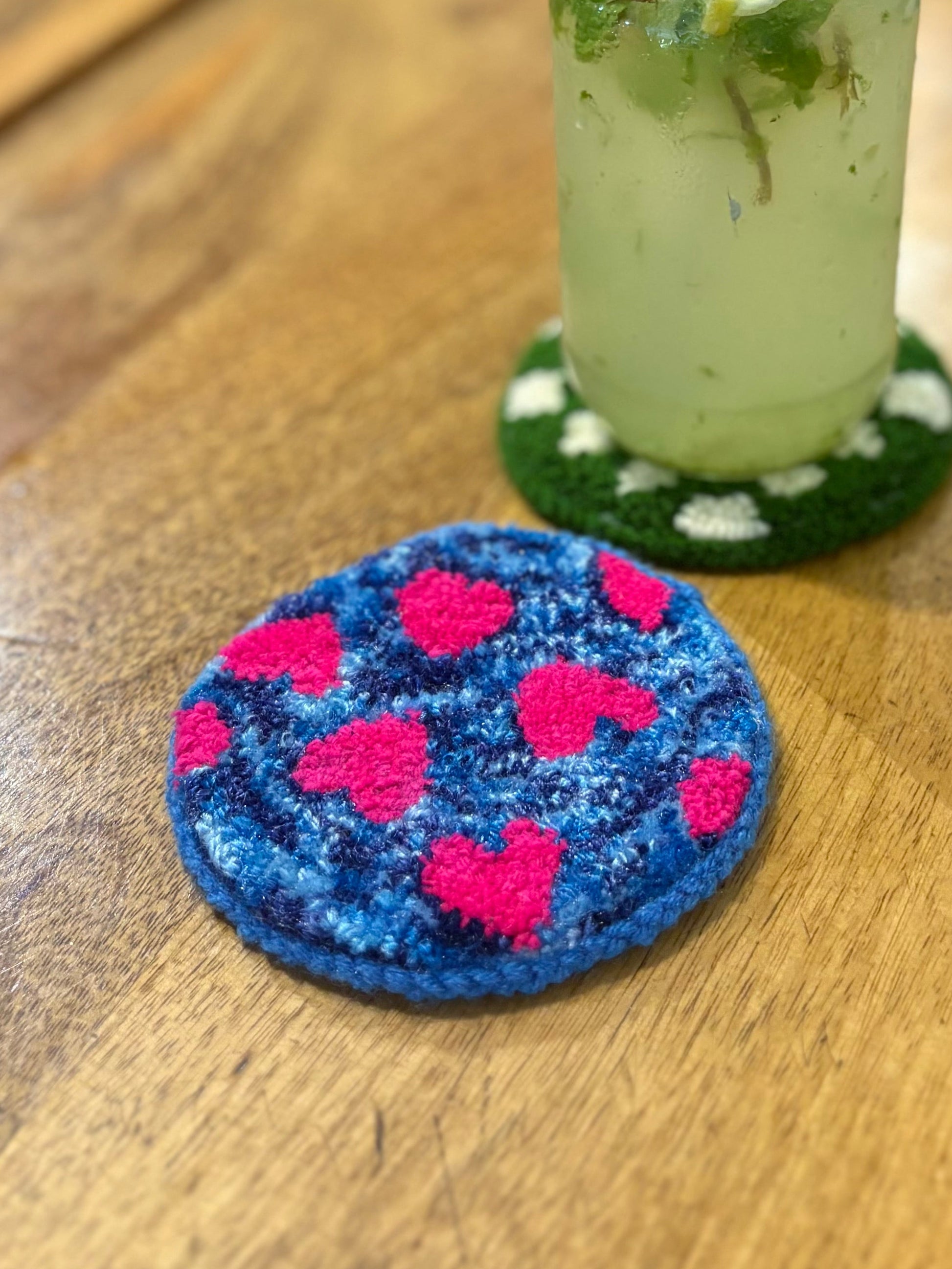Every coaster is made slowly and mindfully by hand using the traditional punch-needle technique. No machines — just patience, passion, and love in every loop.