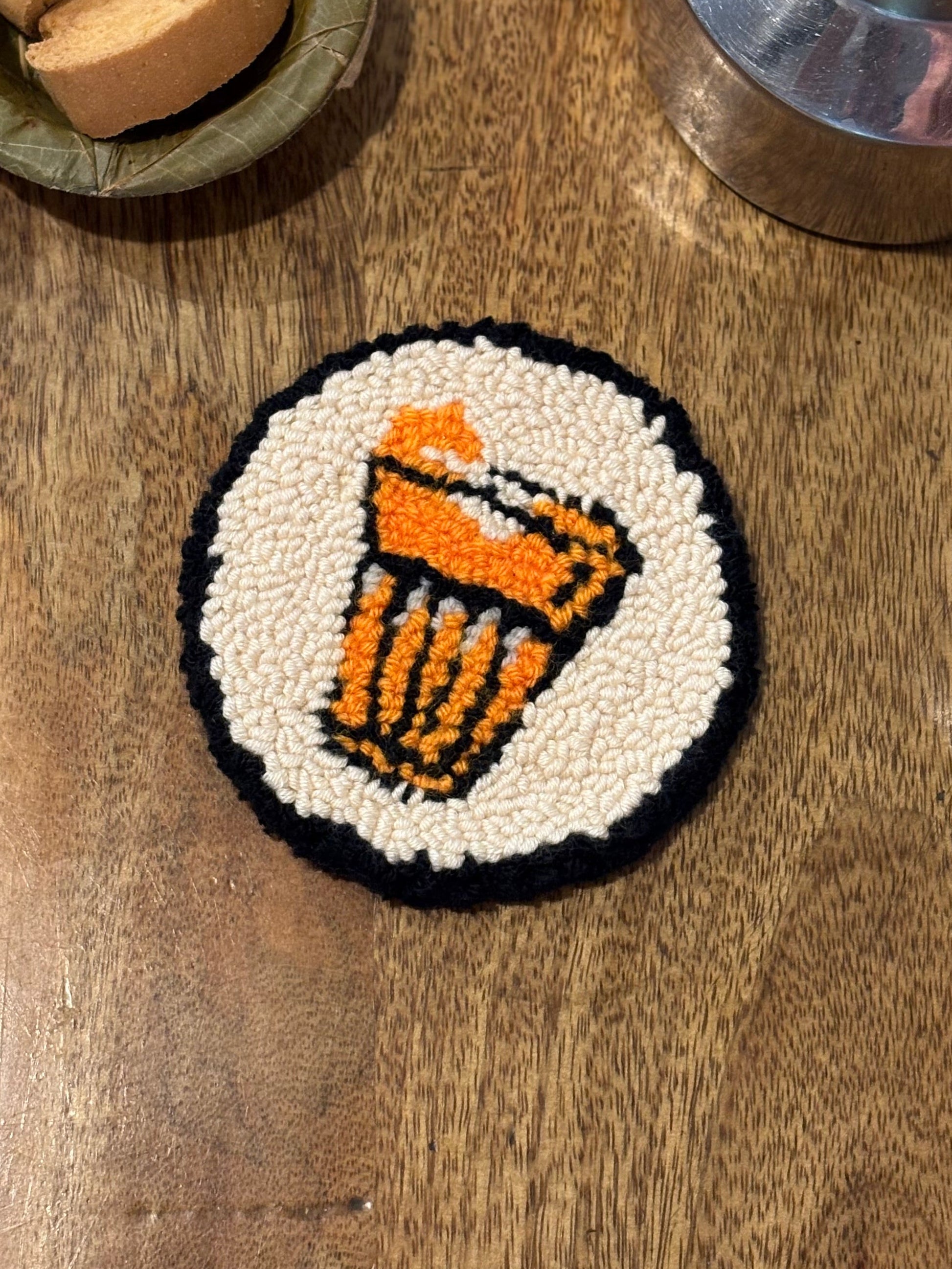 Every coaster is made slowly and mindfully by hand using the traditional punch-needle technique. No machines — just patience, passion, and love in every loop.